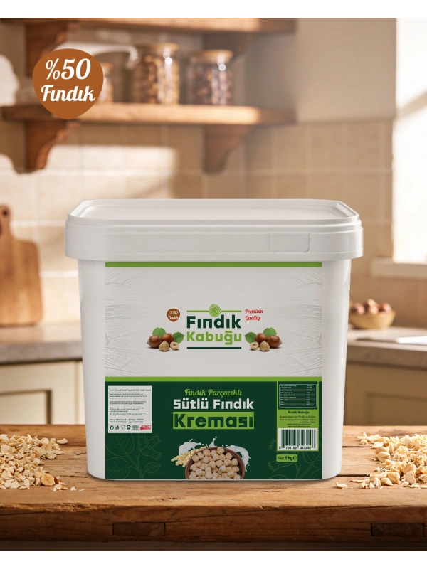 Fındık Kabuğu %50 Fındık Parçacıklı Fındıklı Sütlü Krema 5 Kg