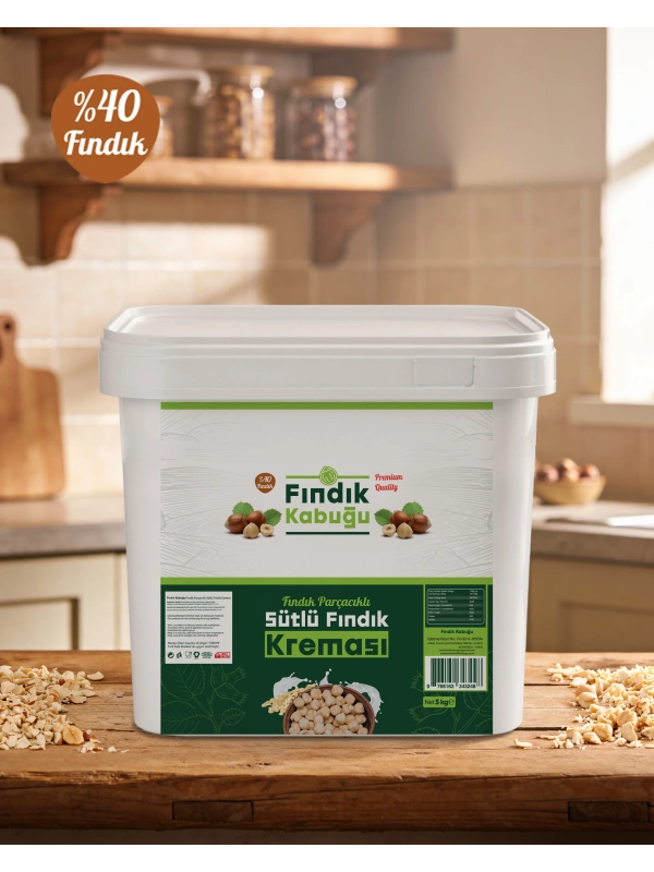 Fındık Kabuğu %40 Fındık Parçacıklı Fındıklı Sütlü Krema 5 Kg