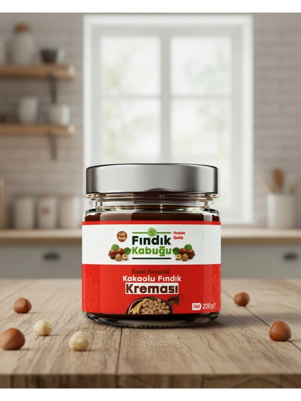 Fındık Kabuğu Fındık Parçacıklı Kakaolu %40 Fındık Kreması 200 gr