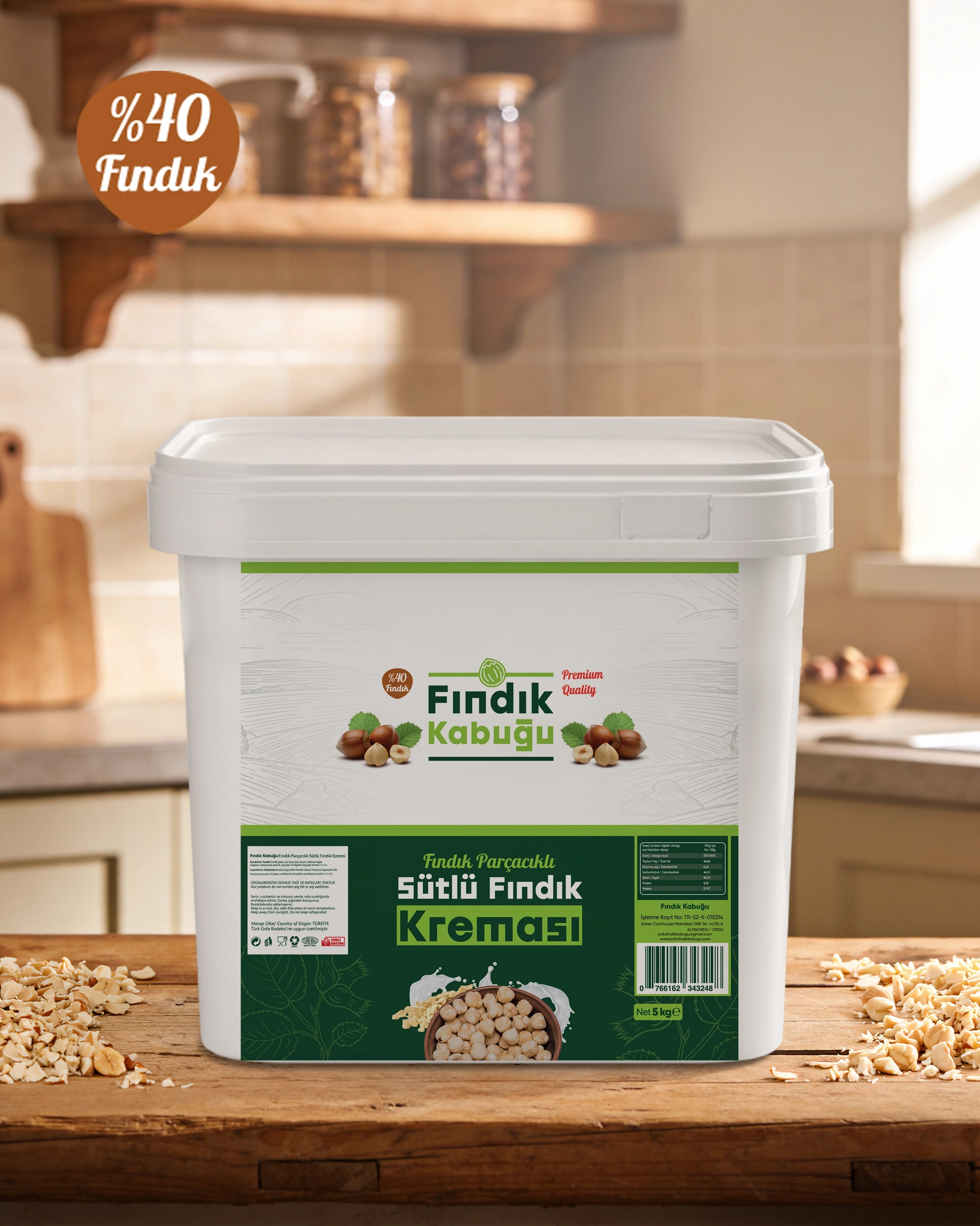 Fındık Kabuğu %40 Fındık Parçacıklı Fındıklı Sütlü Krema 5 Kg